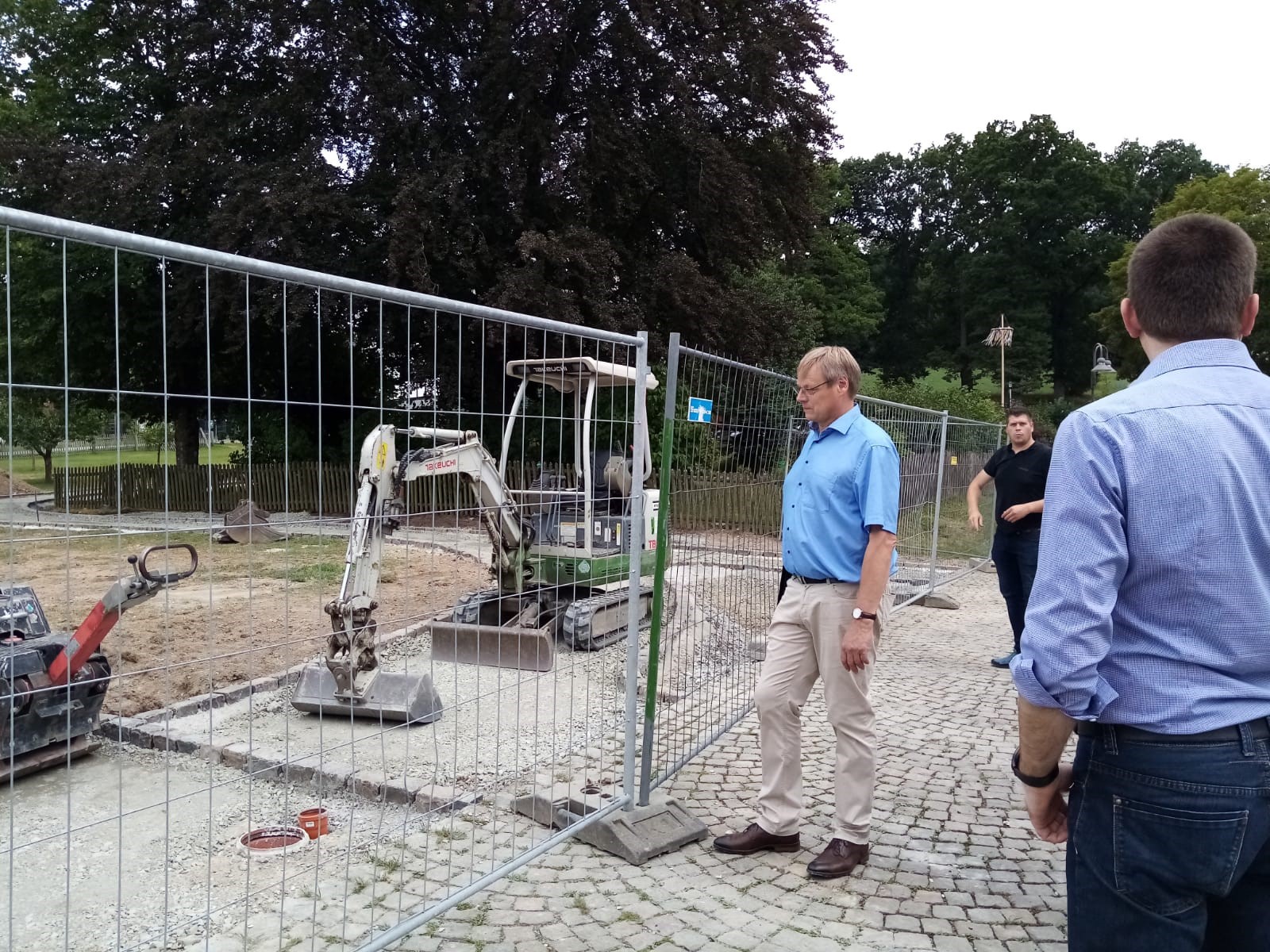 Wir kommen zum Kirchenvorplatz. Die "Hühnerwiese" vor der Kirchenmauer ist ebenfalls eine Baustelle. Hier entstehen neue Fußwege und eine variable Unterstellmöglichkeit. Die Wallfahrtskirche mit den historischen Malereien lockt über das ganze Jahr viele Besucher. Ganz besonders natürlich zur Walburga Woche jeweils in der 1. Mai-Woche. Die neu gestalteten Anlagen sollen dem Besucherandrang gerecht werden.